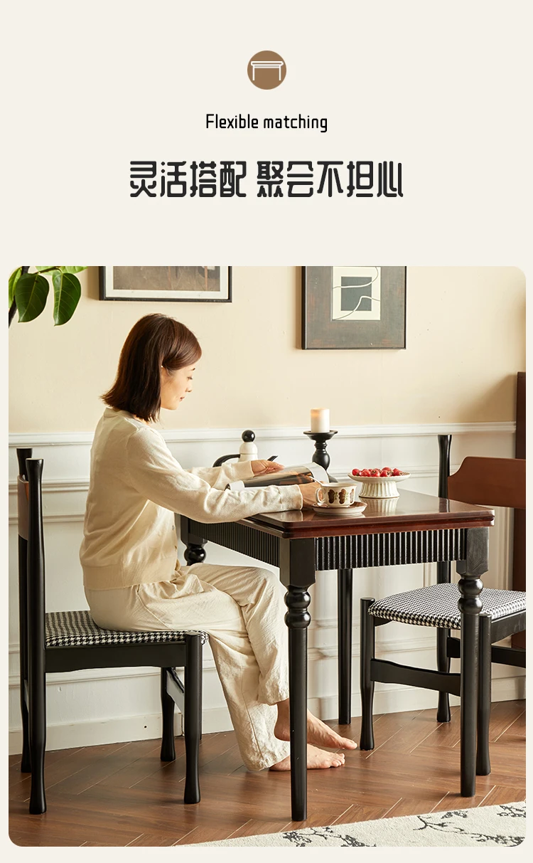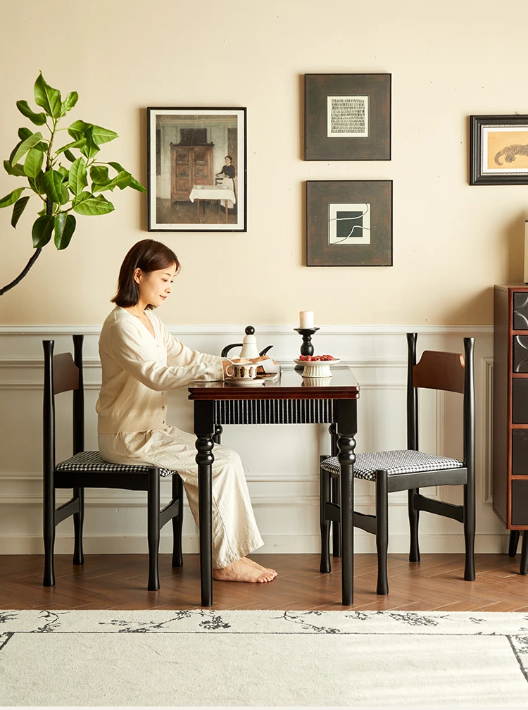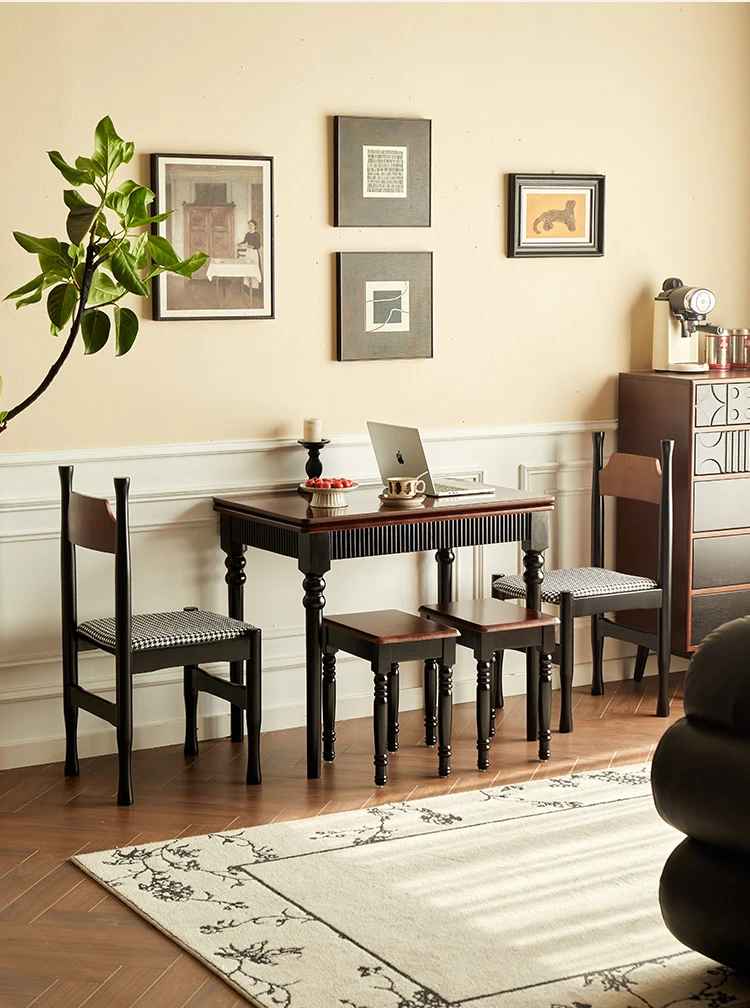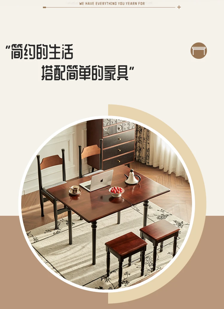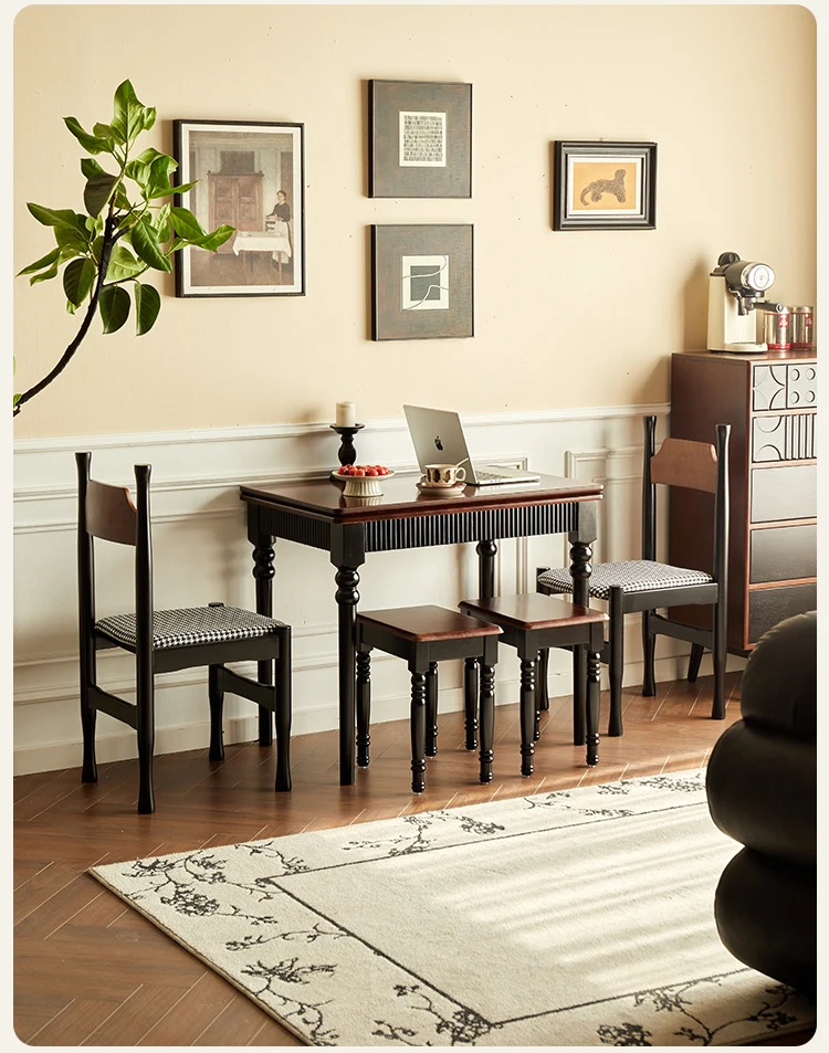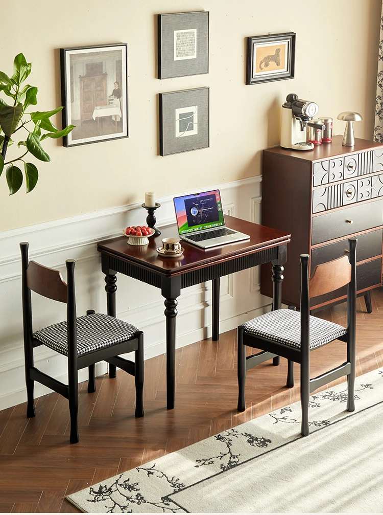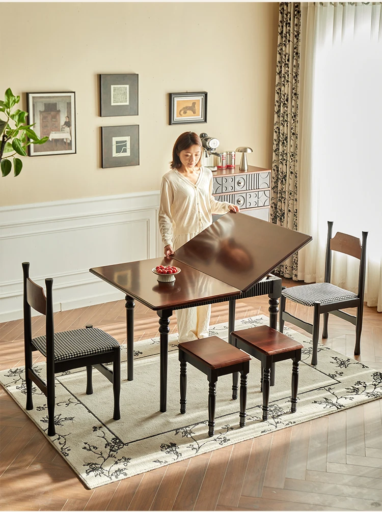Mid Century Dark Dining Tables Foldable French Chic Vintage Dining Tables Unique Tall Legs Table A Manger Pliante Furnitures