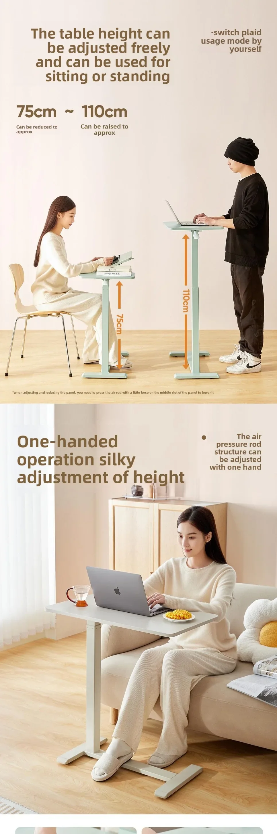 Hydraulic lifting bedside table Movable lifting computer table Desk standing sofa side few folding notebook table