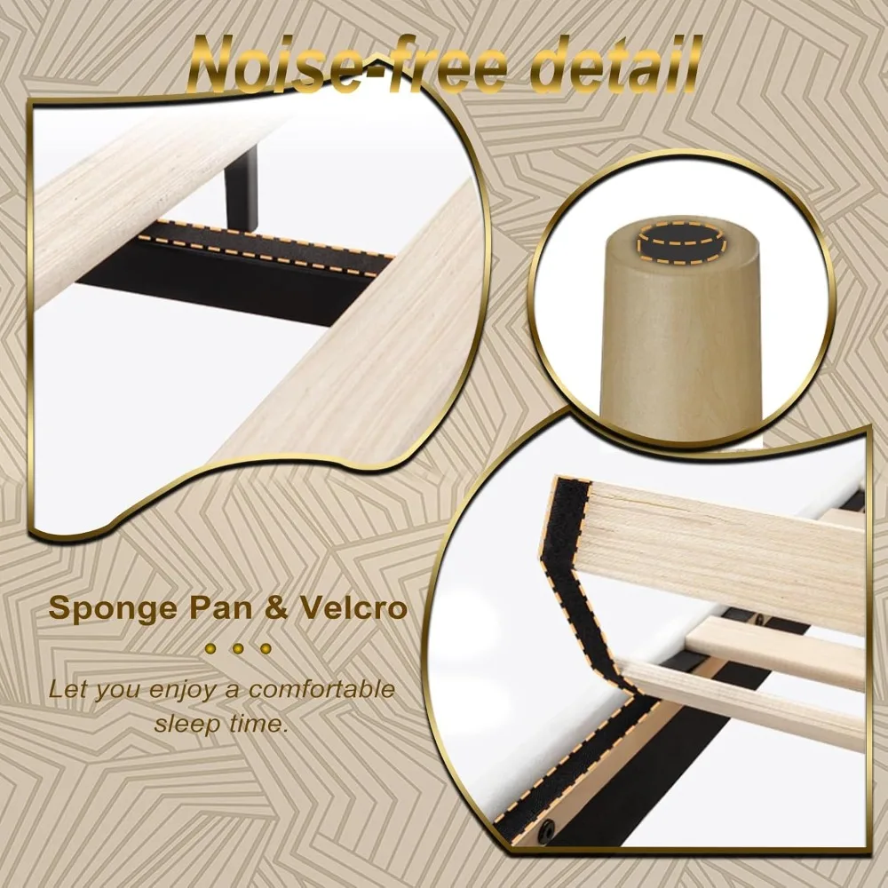 - Sturdy & Noiseless: The bed frame is made of wood frame structure, a series of evenly-spaced solid wood slats and center support legs to provide dense and strong support for up to 800lbs, your kids and pets can play freely on it without any worries.EVA padded tape and wood slats for non-slip and noise-free use